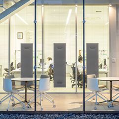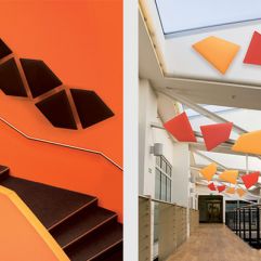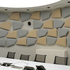 Pannelli composto da materiale a densità variabile, che permette di ottenere un assorbimento selettivo delle diverse frequenze e quindi ottimizzare l’acustica dell’ambiente nonostante lo spessore molto contenuto dei pannelli. L’assenza di cornici e cuciture e la peculiarità del materiale con cui sono realizzati i pannelli, li rendono estremamente leggeri, poco ingombranti e adattabili ad ogni ambiente.