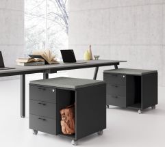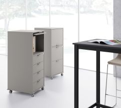 Elementi studiati per conservare piccoli oggetti di uso corrente, in continuo movimento nello spazio operativo. Cassettiere in numerose varianti funzionali ed estetiche cui spetta il ruolo di caratterizzare l’intera postazione. I contenitori sono progettati per garantire un abbinamento adeguato per ogni collezione, con linee sobrie, superfici pulite e ampia modularità. L’impostazione progettuale garantisce funzionalità e aumenta il livello estetico complessivo.