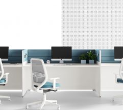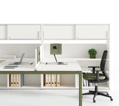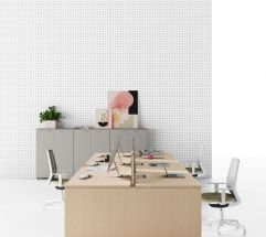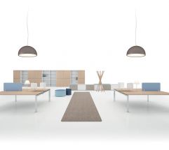 Postazioni operative a struttura condivisa completamente attrezzabili, ideali per soddisfare le esigenze di lavoro di spazi moderni e performanti. I pannelli frontali in feltro stampato definiscono le aree di lavoro e creano un ottimale comfort acustico, locale e ambientale.