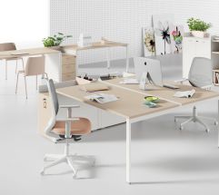 Linea operativa che si distingue per la sua particolare essenzialità e semplicità. Attuale nei concetti fondamentali del lavoro in ufficio, estremamente funzionale nelle postazioni di lavoro condivise.