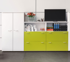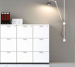 Una serie completa di contenitori che può essere facilmente integrata in ogni ambiente, grazie alla trasversalità delle finiture e delle dimensioni disponibili. Armadi metallici, con ante scorrevoli e battenti, adatti agli ambienti di lavoro operativi, resistenti e durevoli nel tempo.